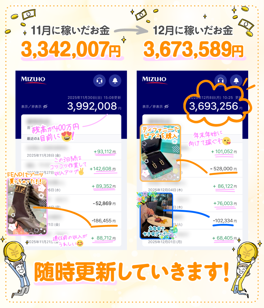 やればやるだけ稼げるので 毎月300万円も現実的な収入に! 💸 こんな毎日があなたにも この収益アップをご確認ください 👍 この収支は すべてご紹介のお仕事の成果! 💼 ↓ ↓ ↓ ↓